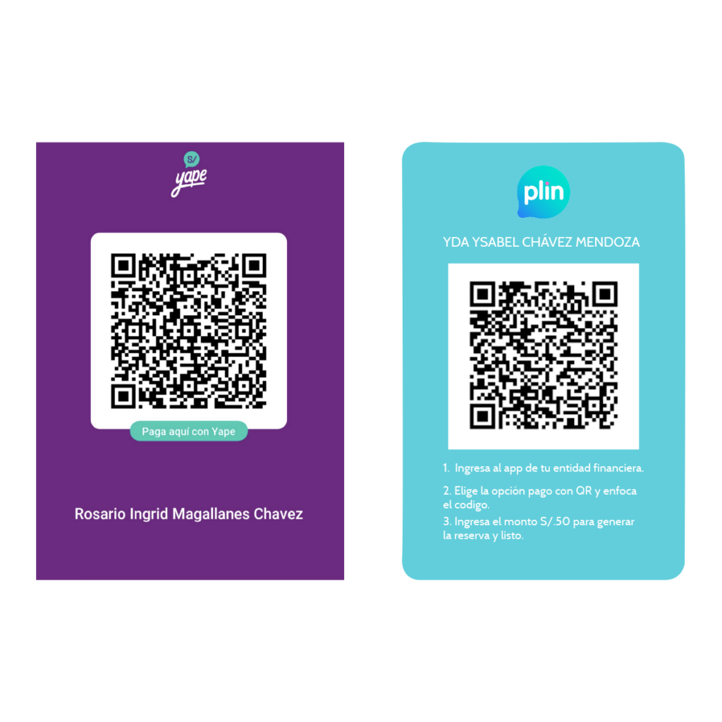 - Paso 2: Selecciona el método de pago para realizar la reserva. En caso sea Yape o Plin, el monto a abonar es S/50. Enviar la captura de pantalla al Whatsapp.